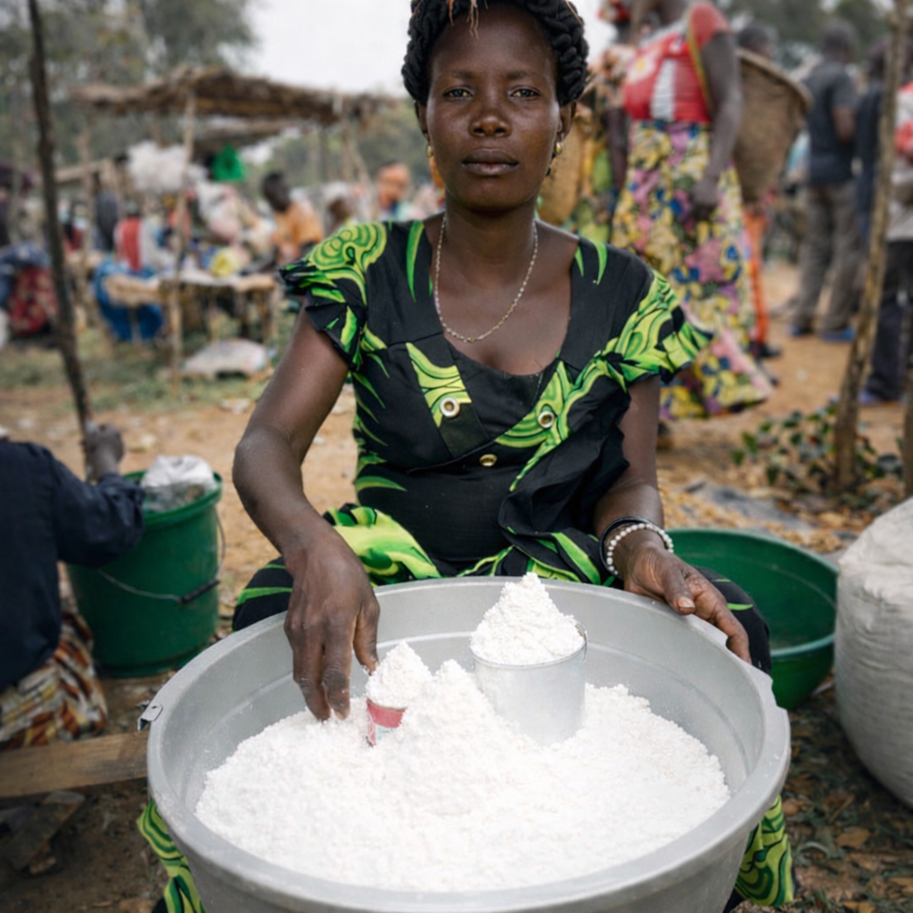Today, she runs a yam flour business, creating stability for her children.
